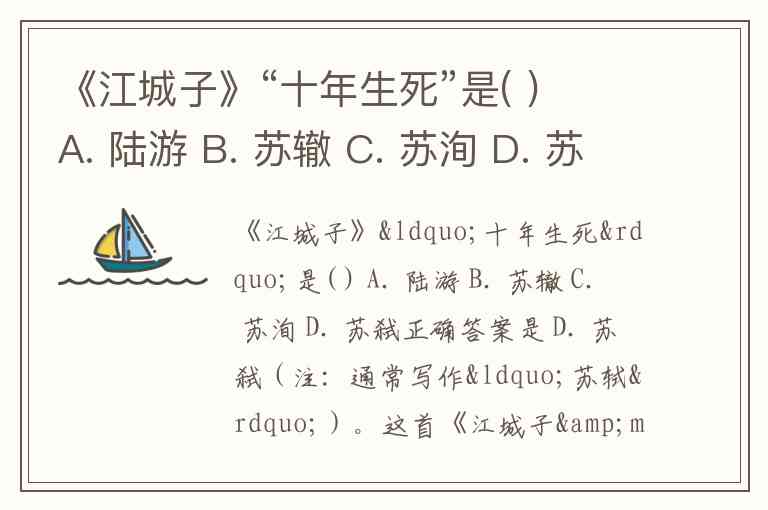 《江城子》“十年生死”是( ) A. 陆游 B. 苏辙 C. 苏洵 D. 苏弑
