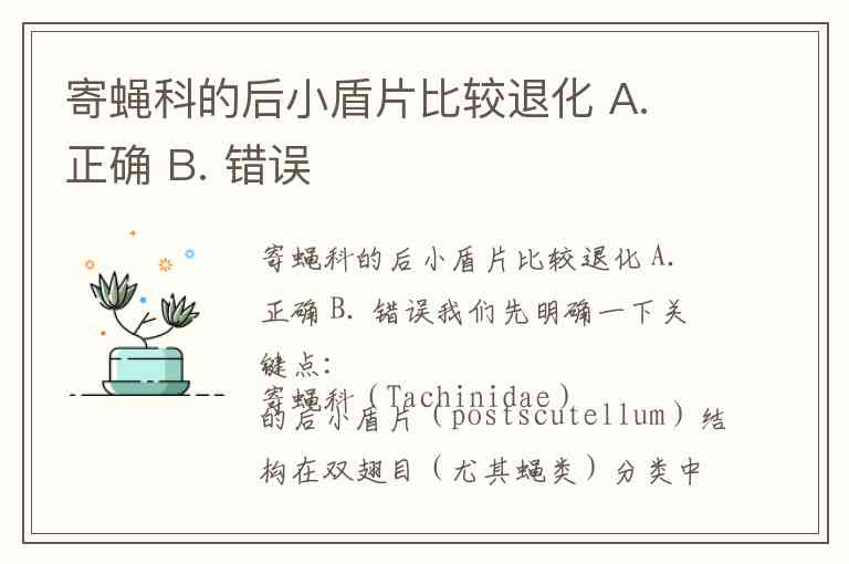 题目说“寄蝇科的后小盾片比较退化”,这与事实相反。因此正确答案应为 错误。