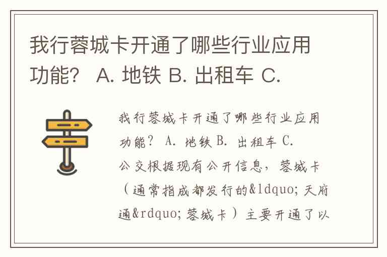 根据现有公开信息,蓉城卡(通常指成都发行的“天府通”蓉城卡)主要开通了以下公共交通行业的应用功能: