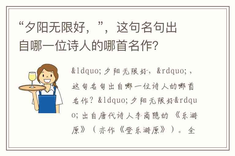 “夕阳无限好,”,这句名句出自哪一位诗人的哪首名作?