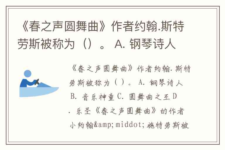 《春之声圆舞曲》的作者小约翰·施特劳斯被誉为 “圆舞曲之王”。