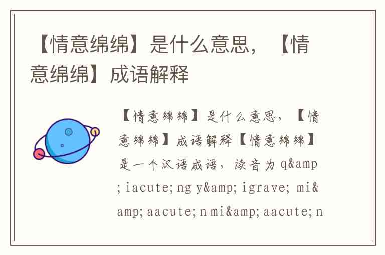 【情意绵绵】是什么意思,【情意绵绵】成语解释