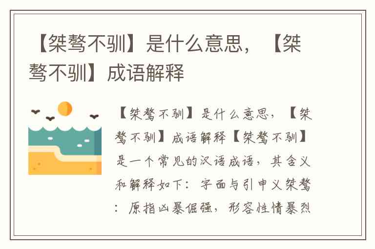【桀骜不驯】是一个常见的汉语成语,其含义和解释如下: