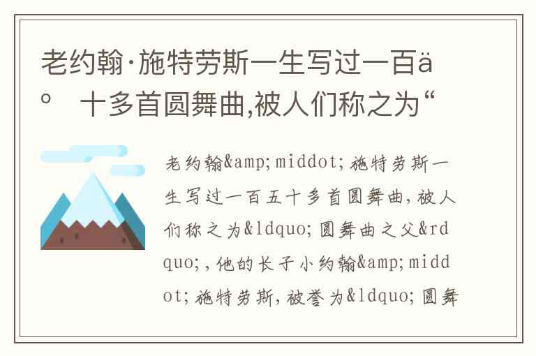 “老约翰·施特劳斯”(Johann Strauss I)以圆舞曲和进行曲闻名,确实创作了很多舞曲,但在音乐史上被称为“圆舞曲之父”的其实是兰纳(Joseph Lannér)或老约翰·施特劳斯与兰纳一同被认为是维也纳圆舞曲的奠基人。不过严格地说,“圆舞曲之父”这个称号在中文资料里有时确实会被用在他身上。