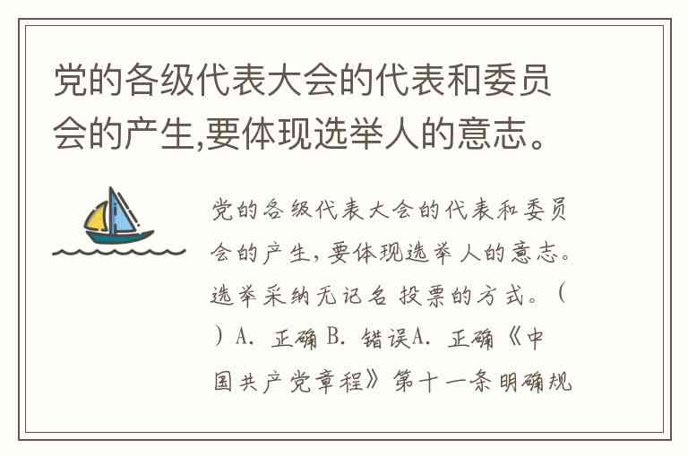 党的各级代表大会的代表和委员会的产生,要体现选举人的意志。选举采纳无记名 投票的方式。( ) A. 正确 B. 错误