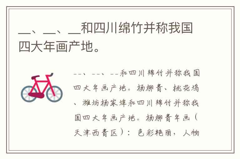 杨柳青、桃花坞、潍坊杨家埠和四川绵竹并称我国四大年画产地。