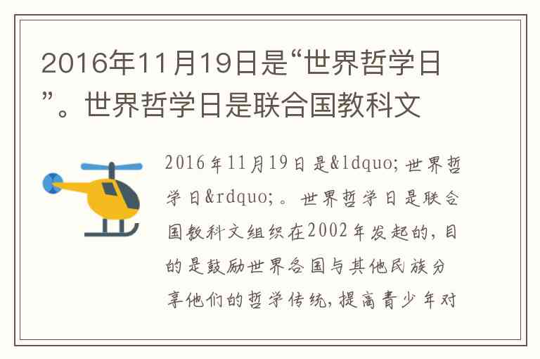 2016年11月19日是“世界哲学日”。世界哲学日是联合国教科文组织在2002年发起的,目的是鼓励世界各国与其他民族分享他们的哲学传统,提高青少年对哲学的兴趣,激发人们对现代社会面临的问题进行思考。下列关于哲学的表述,正确的是( )①哲学是关于世界观的学说 ②哲学是世界观与方法论的统一 ③哲学是对自然、社会和思维知识的概括和总结④哲学是科学的世界观和方法论 A. ①②④ B. ①③④ C. ②③④ D. ①②③