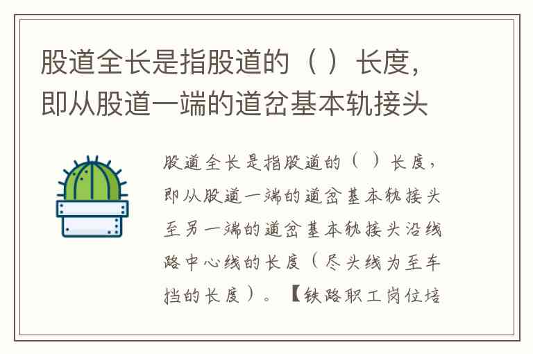 股道全长是指股道的( )长度,即从股道一端的道岔基本轨接头至另一端的道岔基本轨接头沿线路中心线的长度(尽头线为至车挡的长度)。【铁路职工岗位培训教材铁路线路工第一章第四节P7】 A. 平均 B. 实际 C. 换算 D. 理论