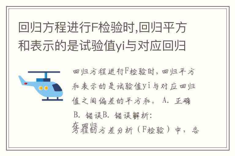回归方程进行F检验时,回归平方和表示的是试验值yi与对应回归值之间偏差的平方和。 A. 正确 B. 错误