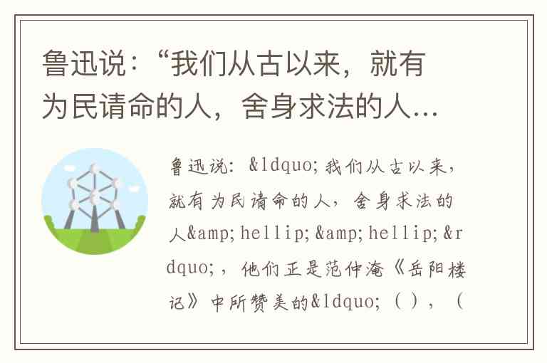 鲁迅说:“我们从古以来,就有为民请命的人,舍身求法的人……”,他们正是范仲淹《岳阳楼记》中所赞美的“(),()”的人