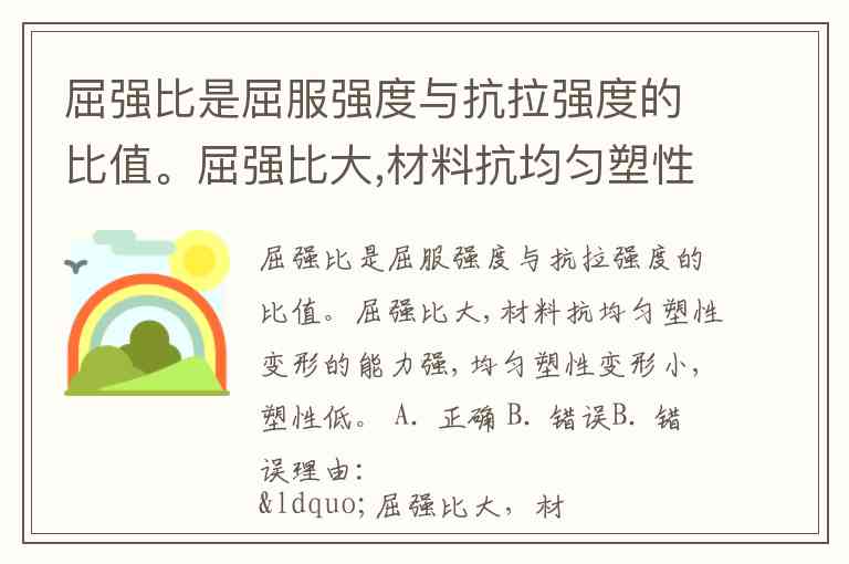 “屈强比大,材料抗均匀塑性变形的能力强”这句话本身是正确的,但题目后面说“均匀塑性变形小,塑性低”则不够准确,容易引起混淆。