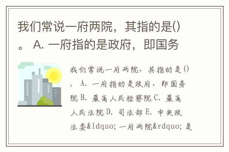 我们常说一府两院,其指的是()。 A. 一府指的是政府,即国务院 B. 最高人民检察院 C. 最高人民法院 D. 司法部 E. 中央政法委
