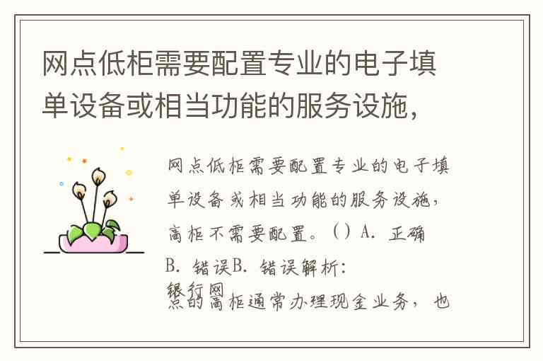 网点低柜需要配置专业的电子填单设备或相当功能的服务设施,高柜不需要配置。( ) A. 正确 B. 错误