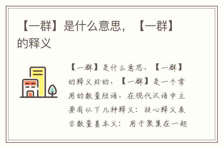 好的,【一群】是一个常用的数量短语,在现代汉语中主要有以下几种释义: