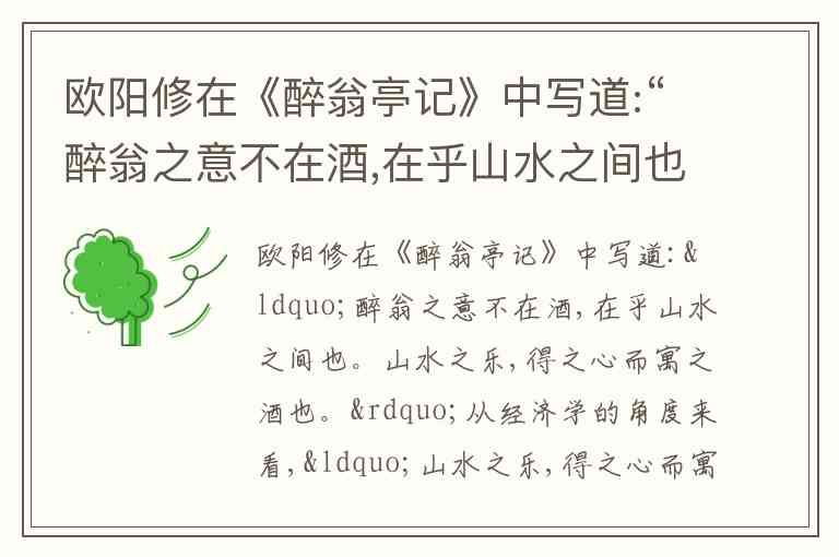 酒在这里是一种商品,但它不仅是解渴或满足生理需要的物品,更是人们寄托精神体验(山水之乐)的载体。