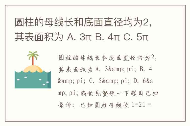圆柱的母线长和底面直径均为2,其表面积为 A. 3π B. 4π C. 5π D. 6π