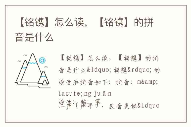 “铭镌”的读音和拼音如下: