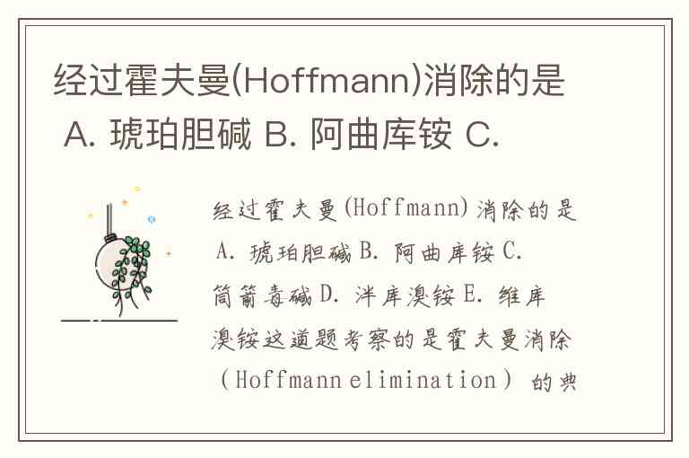经过霍夫曼(Hoffmann)消除的是 A. 琥珀胆碱 B. 阿曲库铵 C. 筒箭毒碱 D. 泮库溴铵 E. 维库溴铵
