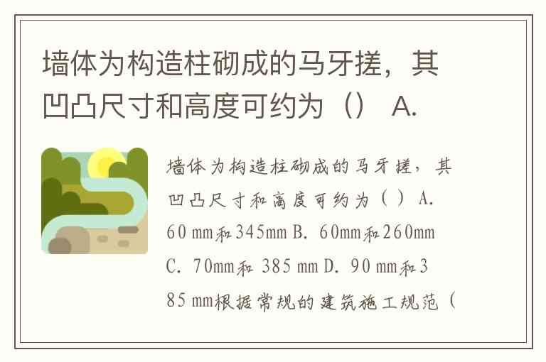 墙体为构造柱砌成的马牙搓,其凹凸尺寸和高度可约为() A. 60 mm和345mm B. 60mm和260mm C. 70mm和 385 mm D. 90 mm和385 mm
