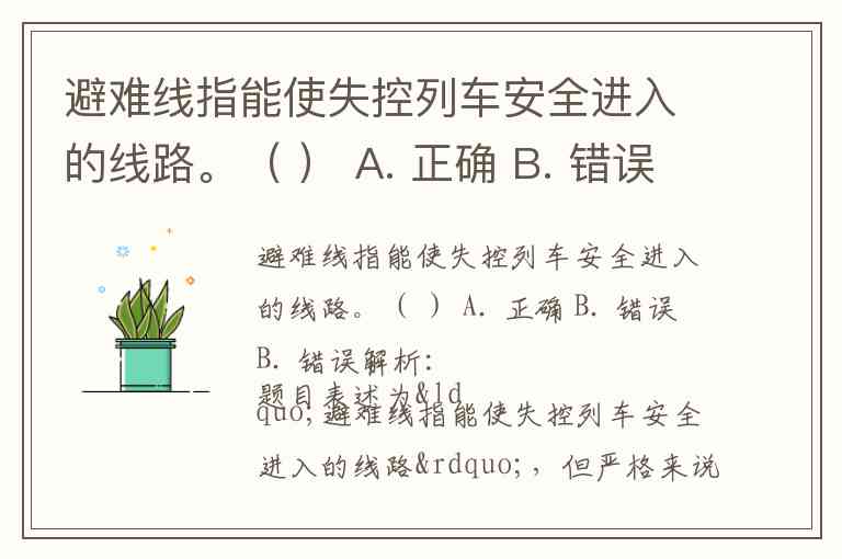 题目表述为“避难线指能使失控列车安全进入的线路”,但严格来说,避难线(也称安全线)的主要作用并非仅仅针对“失控列车”。