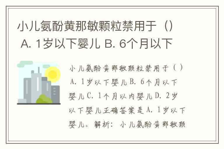 小儿氨酚黄那敏颗粒禁用于() A. 1岁以下婴儿 B. 6个月以下婴儿 C. 1个月以内婴儿 D. 2岁以下婴儿