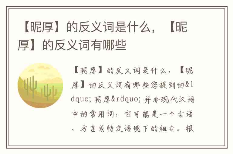 您提到的“昵厚”并非现代汉语中的常用词,它可能是一个古语、方言或特定语境下的组合。根据字义推测: