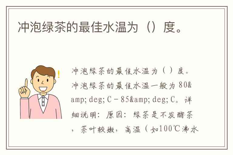 冲泡绿茶的最佳水温一般为 80°C - 85°C。