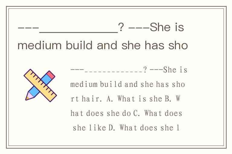 ---_____________? ---She is medium build and she has short hair. A. What is she B. What does she do C. What does she like D. What does she look like