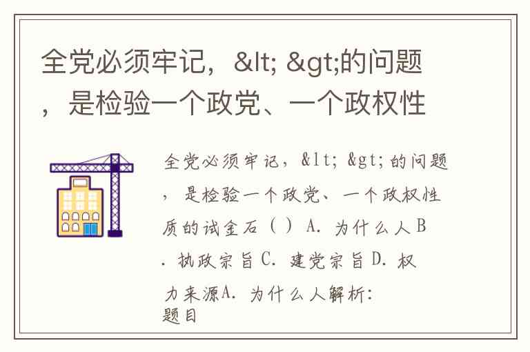 全党必须牢记,< >的问题,是检验一个政党、一个政权性质的试金石() A. 为什么人 B. 执政宗旨 C. 建党宗旨 D. 权力来源