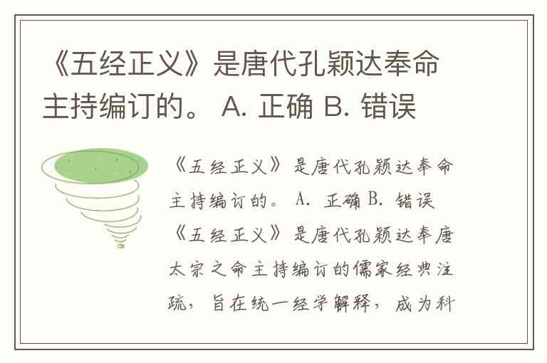 《五经正义》是唐代孔颖达奉命主持编订的。 A. 正确 B. 错误