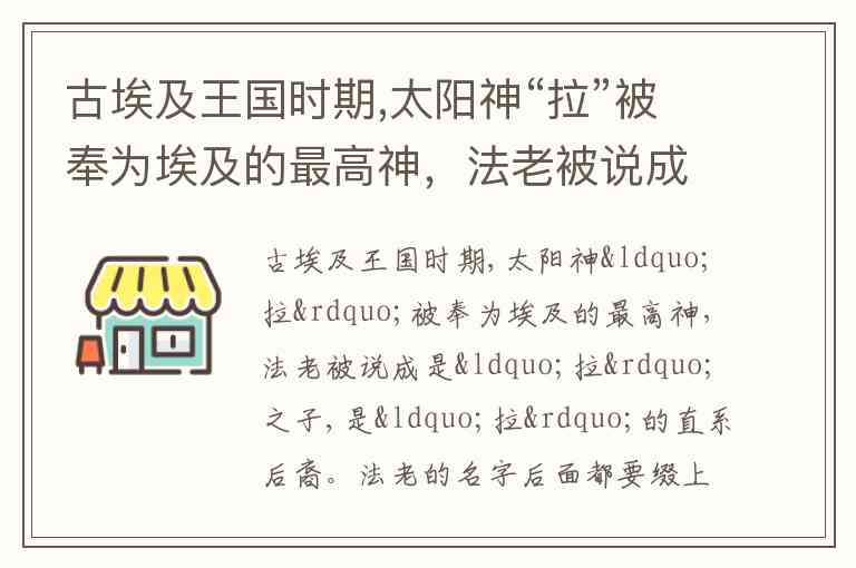 古埃及王国时期,太阳神“拉”被尊为最高神。