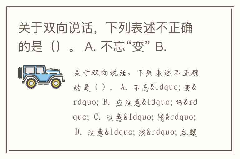 关于双向说话,下列表述不正确的是()。 A. 不忘“变” B. 应注意“巧” C. 注意“情” D. 注意“浅”