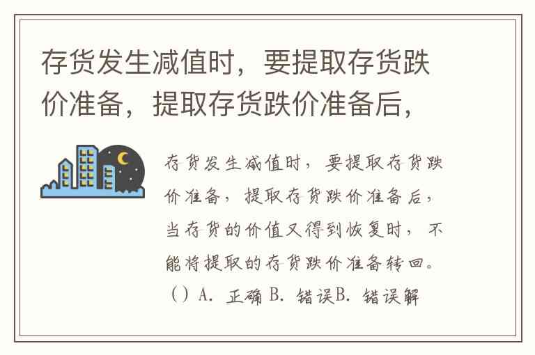 存货发生减值时,要提取存货跌价准备,提取存货跌价准备后,当存货的价值又得到恢复时,不能将提取的存货跌价准备转回。 ( ) A. 正确 B. 错误