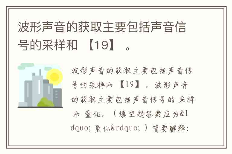 波形声音的获取主要包括声音信号的采样和 【19】 。