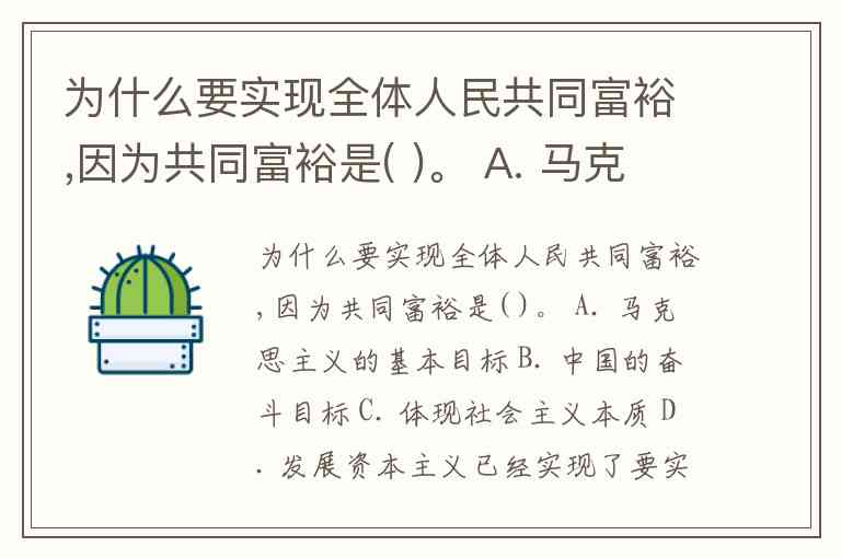 为什么要实现全体人民共同富裕,因为共同富裕是( )。 A. 马克思主义的基本目标 B. 中国的奋斗目标 C. 体现社会主义本质 D. 发展资本主义已经实现了