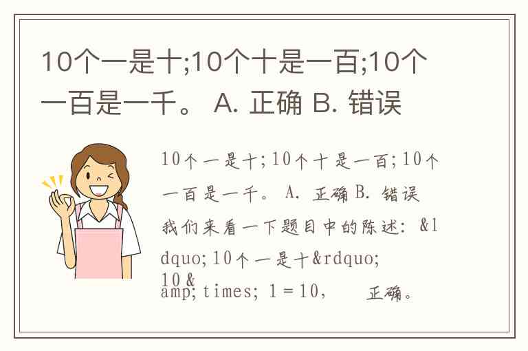 10个一是十;10个十是一百;10个一百是一千。 A. 正确 B. 错误