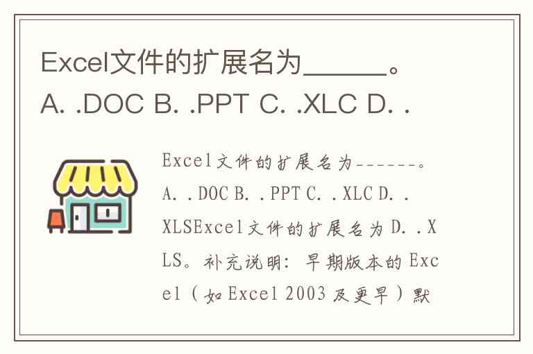 Excel文件的扩展名为______。 A. .DOC B. .PPT C. .XLC D. .XLS