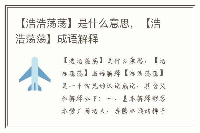 【浩浩荡荡】是一个常见的汉语成语,其含义和解释如下: