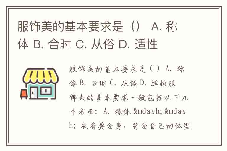 服饰美的基本要求是() A. 称体 B. 合时 C. 从俗 D. 适性