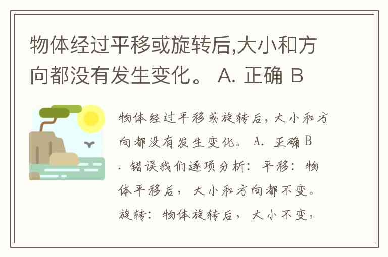 物体经过平移或旋转后,大小和方向都没有发生变化。 A. 正确 B. 错误