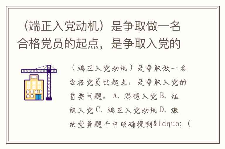 (端正入党动机)是争取做一名合格党员的起点,是争取入党的首要问题。 A. 思想入党 B. 组织入党 C. 端正入党动机 D. 缴纳党费