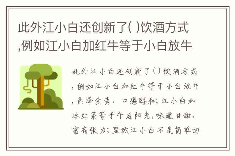 第一空:说的是“江小白创新了( )饮酒方式”,后文举例说明是区别于传统的、有自己特色的搭配喝法。搭配“自己的”比“独特的”在句意上更自然(因为“自己的”突出其原创性、专属的饮用方式;“独特的”虽然也可,但往往更强调与常规不同,而这里是在说属于江小白品牌的饮用方式,选“自己的”更贴合前文“创新”与后文举例的品牌专属搭配)。不过,前有“创新”,用“独特的”语法语义上也通,结合第二空判断。