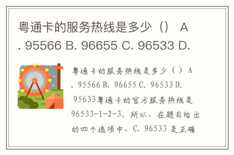 粤通卡的服务热线是多少() A. 95566 B. 96655 C. 96533 D. 95633