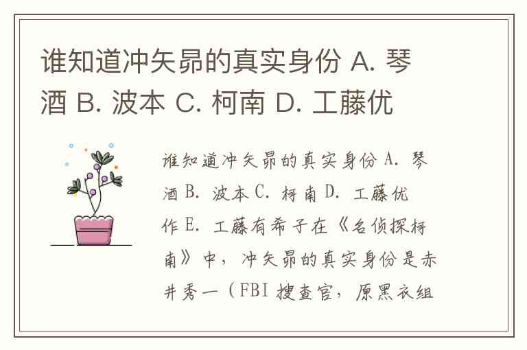 谁知道冲矢昴的真实身份 A. 琴酒 B. 波本 C. 柯南 D. 工藤优作 E. 工藤有希子