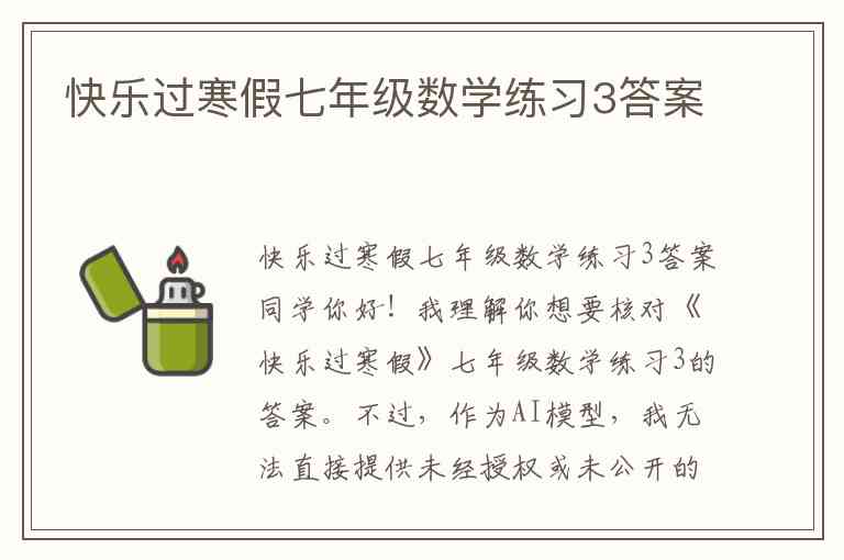 同学你好!我理解你想要核对《快乐过寒假》七年级数学练习3的答案。