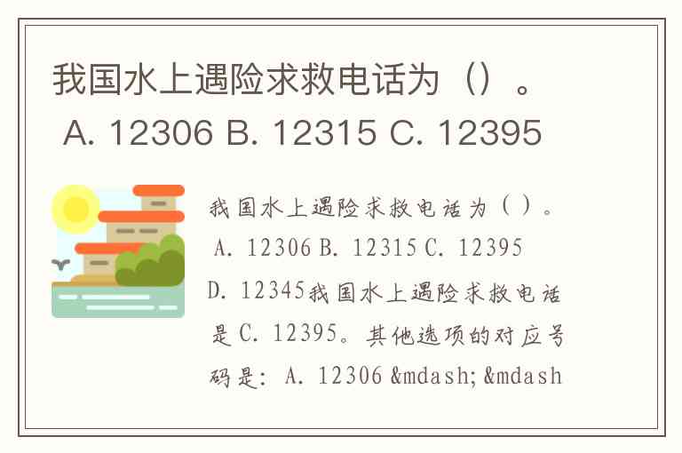 我国水上遇险求救电话为()。 A. 12306 B. 12315 C. 12395 D. 12345