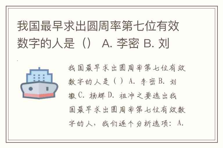 要选出我国最早求出圆周率第七位有效数字的人,我们逐个分析选项: