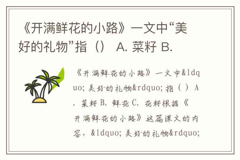 《开满鲜花的小路》一文中“美好的礼物”指() A. 菜籽 B. 鲜花 C. 花籽
