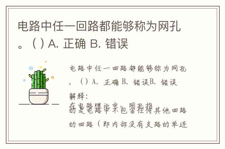 电路中任一回路都能够称为网孔。 ( ) A. 正确 B. 错误