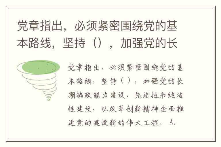 党章指出,必须紧密围绕党的基本路线,坚持(),加强党的长期执政能力建设、先进性和纯洁性建设,以改革创新精神全面推进党的建设新的伟大工程。 A. 党要管党 B. 从严治党 C. 全面从严治党